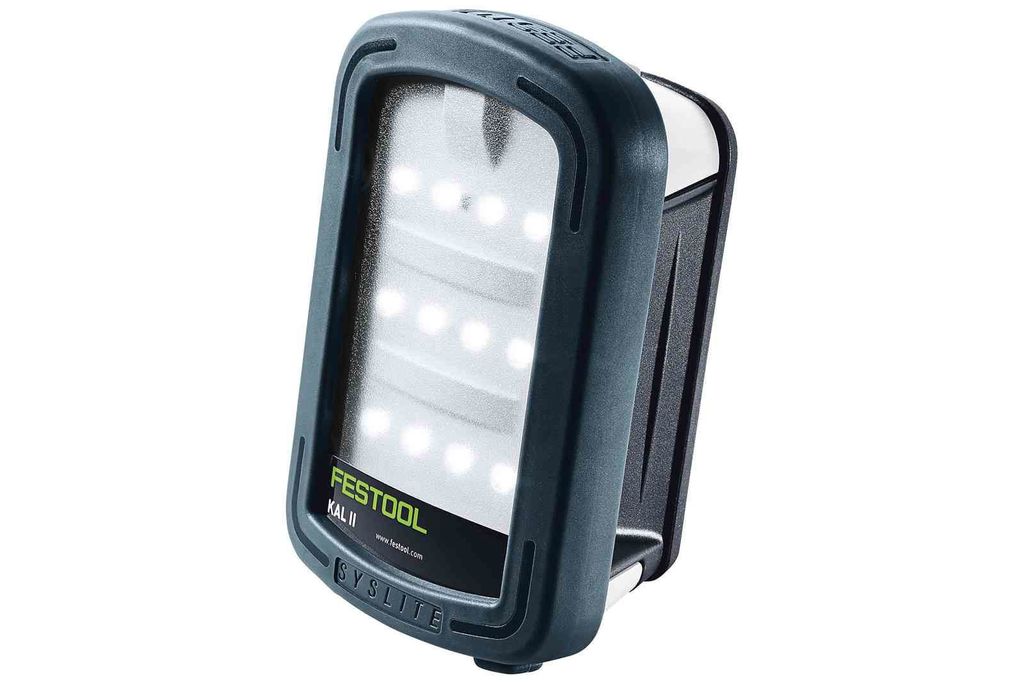 Festool arbetsbelysning SYSLITE KAL II kompakt, robust och hållfast och ger suveränt ljus genom 12 högeffektiva LED:er. Med lång brinntid tack vare effektstarkt Li-jonbatteri med 7,2 V/2,0Ah.
