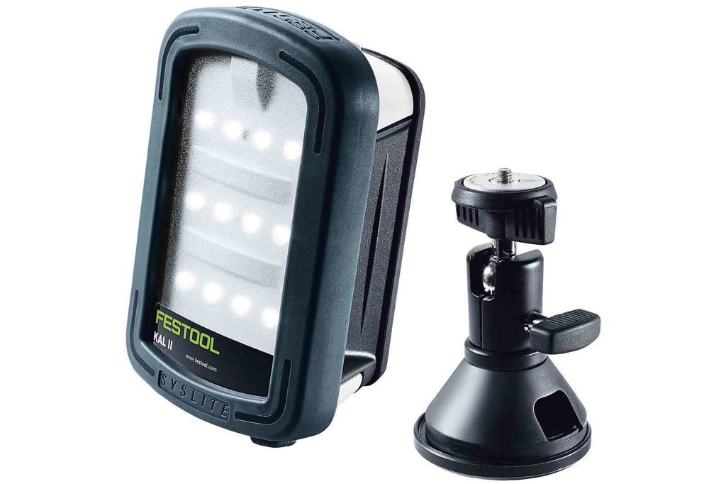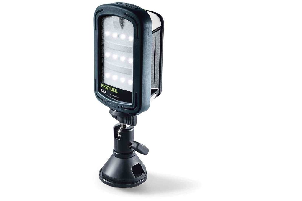 Festool arbetsbelysning SYSLITE KAL II ger suveränt ljus genom 12 högeffektiva LED:er. Lång brinntid tack vare effektstarkt Li-jonbatteri med 7,2 V / 2,9 Ah. Mycket bred spridningsvinkel på 170°.