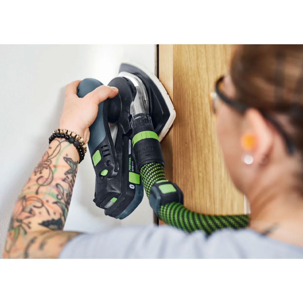 Festool DTSC 200-Basic passar för slipning av bord, ytor, dörrar, dörrkarmar, fönsterluckor, trappor, trästommar, träfasader, taklister, staket, balkongräcken och möbler. Den är även lämplig för små ytor i gipskonstruktioner och andra detaljer där åtkomlighet och precision är viktiga. Tack vare deltaformen och den stora slipytan fungerar den lika bra vid renovering som vid finsnickeri och löpande underhåll både inomhus och utomhus.