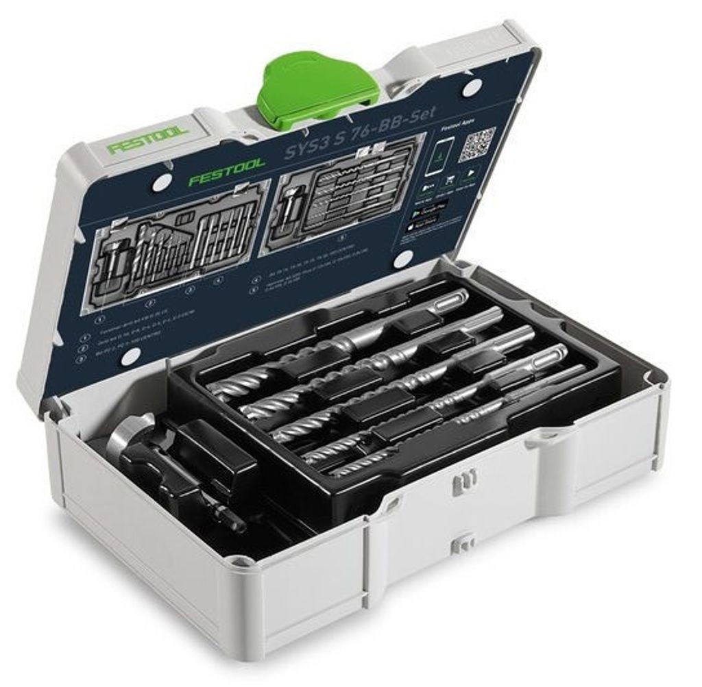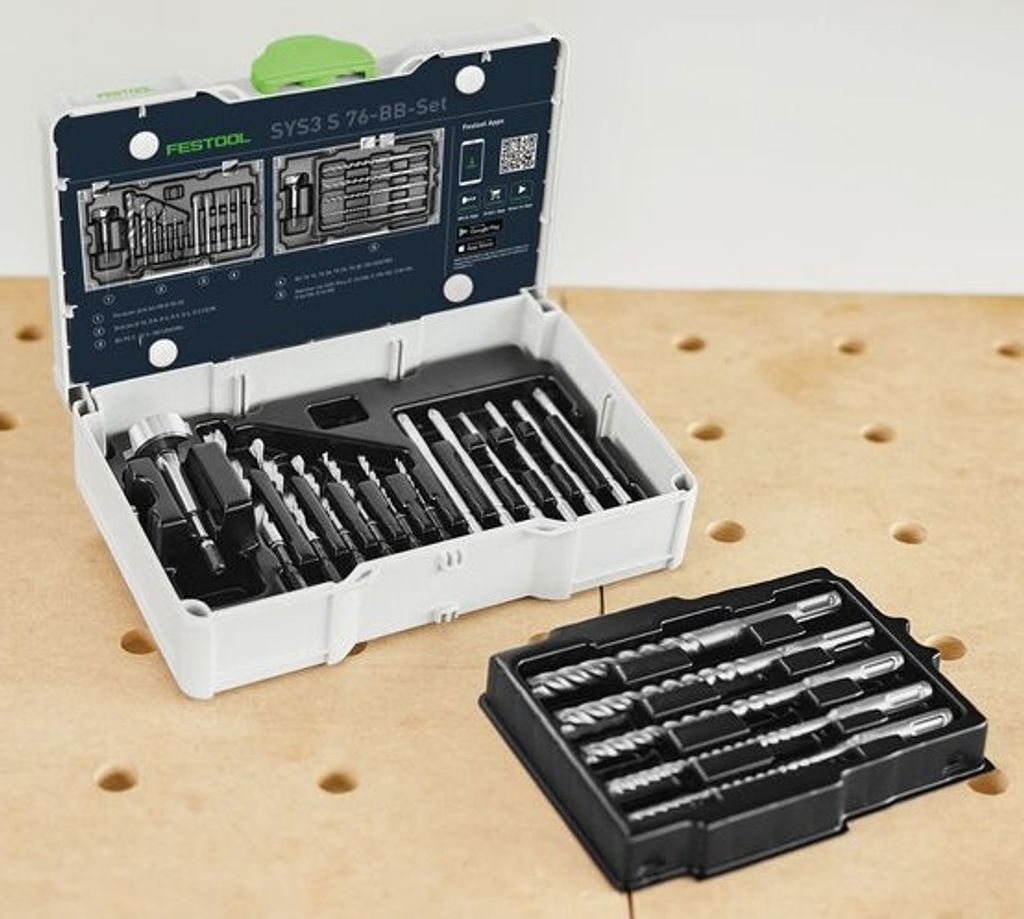 Festool Bits- och borrset SYS3 S 76-BB-Set är idealiskt för borrning i betong, murverk, trä och trämaterial. Perfekt för bygg- och renoveringsprojekt samt möbelsnickeri. Lämpar sig även för exakta skruvdragningar i beslag och trånga utrymmen.