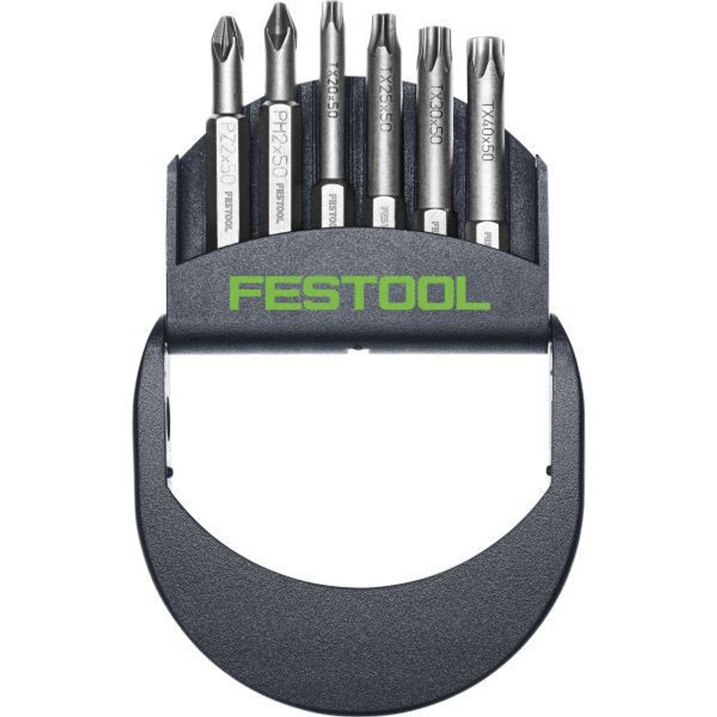 Festool BT-IMP SORT5 är en bitskasset med fyra olika 50 mm torx-bits och vardera ett pozidriv- och phillips-bits som täcker de typiska användningsområdena så att du kan reagera flexibelt på olika skruvuppgifter. Eftersom bitsen är 50 mm långa fungerar de även på svåråtkomliga ställen.