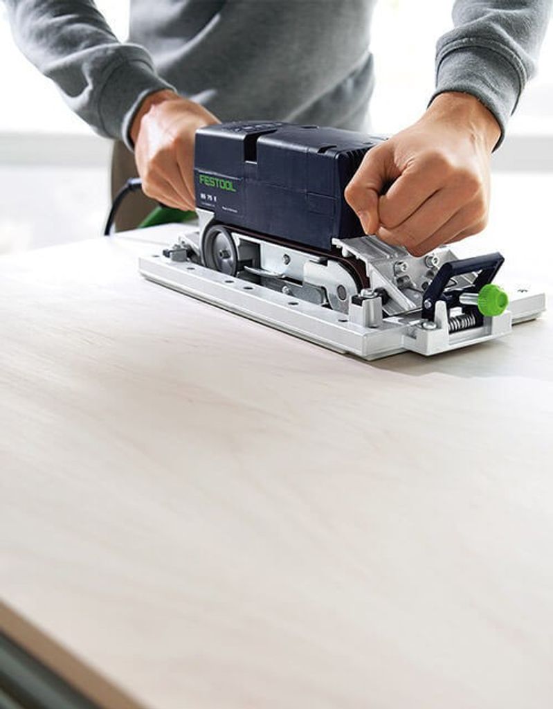 Den behändiga planslipen. Oavsett om det gäller grov- eller finslipning är bandslipmaskinerna från Festool pålitliga medhjälpare. Då är deras arbetsprincip en stor fördel. Eftersom man bara arbetar i en riktning, parallellt med ådringen, uppstår inga cirkelmönster och man slipper trist och besvärlig efterbearbetning. Med en bredd på 75 mm är bandslipen BS 75 mycket behändig.
