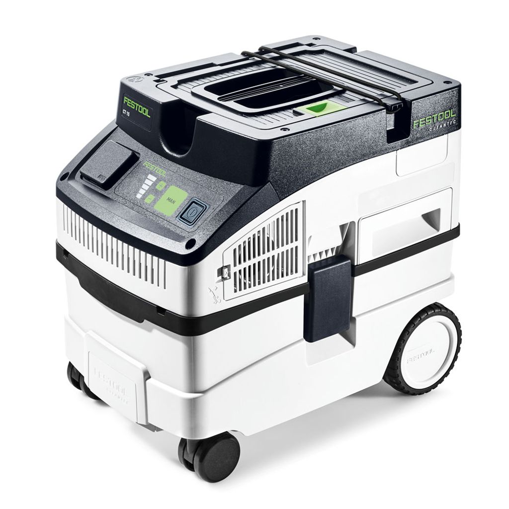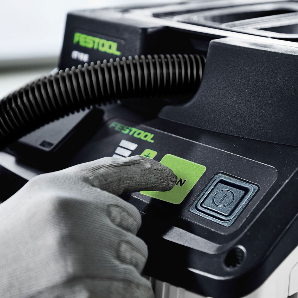 Festool CLEANTEC CT 15 är den kompakta städdammsugaren för verkstad, bygge och kontor. Den är liten, lätt och mobil men rymmer 15 liter och utnyttjar behållaren effektivt. Touchstyrning och fem sugsteg gör användningen enkel. Antistatisk konstruktion, plan förvaringsyta och smart filterbyte utifrån. Rengöringstillbehören ingår och förvaras direkt i maskinen.