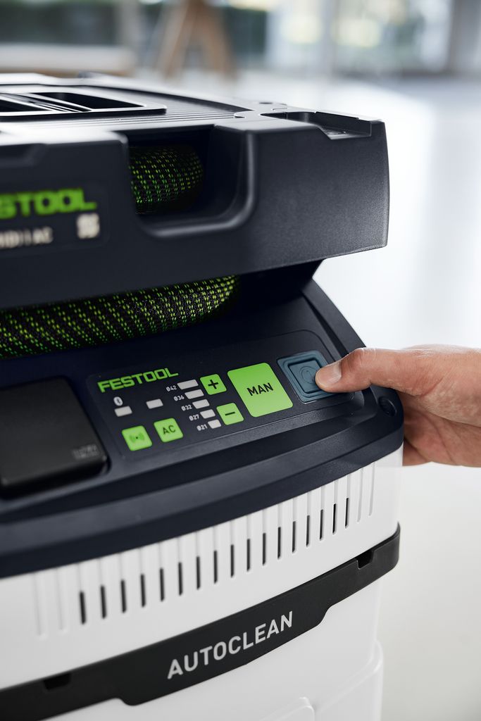 Festool CTM MIDI I AC är nästa generations kompakta dammsugare – perfekt för professionella användare som behöver effektiv dammhantering i ett smidigt format. Med den avancerade AUTOCLEAN-funktionen rengörs filtret automatiskt i intervaller som du själv väljer, vilket säkerställer konstant hög sugeffekt och minskat underhåll.