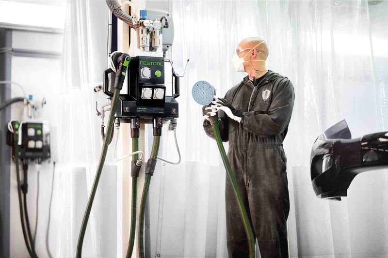 Festool energi-/utsugsenhet på 4-8 bar för användning med Festools dammsugare CT/SRM. Levereras med en tryckluftsförsörjningsenhet med 3 DL-anslutningar.