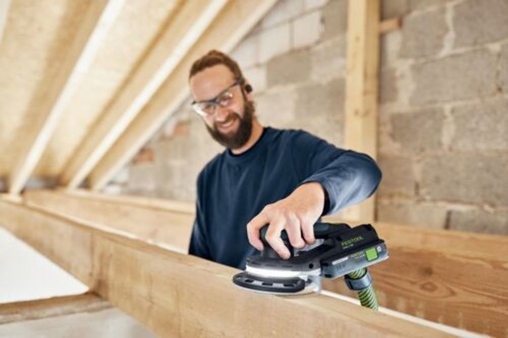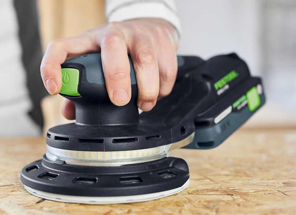 Festool ETSC 2 150-Basic är en banbrytande batteridriven excenterslip som kombinerar rörelsefrihet, precision och användarvänlighet. Med sin integrerade LED-ljusring gör maskinen det enkelt att upptäcka och bearbeta ojämnheter på ytor, vilket sparar tid och säkerställer en perfekt finish. Den kompakta och ergonomiska designen gör att slipmaskinen ligger som gjuten i handen och möjliggör bekvämt arbete i trånga utrymmen eller ovanför huvudhöjd.