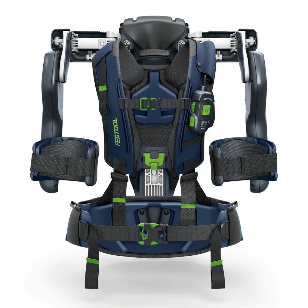 Festool ExoActive är det batteridrivna exoskelettet som ger aktivt stöd vid arbete framför bröstet och ovanför huvudet. Med justerbar stödeffekt och tre arbetsområden avlastas axlar och nacke så att du orkar längre, håller fokus och arbetar effektivare. Låg vikt, ryggsäckslik passform och tvättbara textilier ger hög komfort hela dagen.