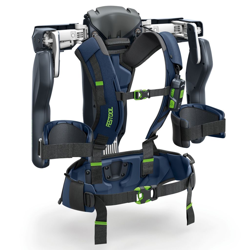Festool ExoActive kit ger aktivt stöd för arbete framför bröstet och ovanför huvudet. Stödeffekt och arbetsområde ställs in på några sekunder för rätt avlastning i varje moment. Bekväm ryggsäckslik passform, tvättbara textilier och smidig hantering via Bluetooth. Levereras komplett med två 4,0 Ah batterier, laddare och EPP transportlåda.