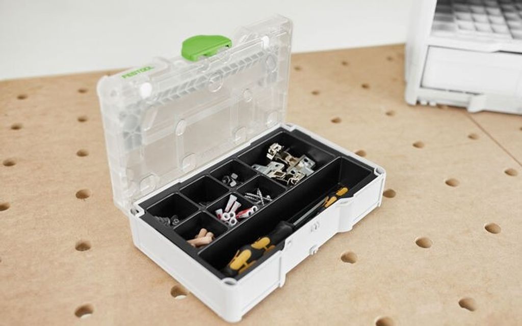 Festool Formpressad insats TZE-UNI SYS3 S 76 är en praktisk lösning för att hålla ordning och reda på småsaker och handverktyg i Mini-Systainer³ S 76. Med 8 fack i olika storlekar kan du enkelt sortera och förvara smådelar och tillbehör. Den formpressade insatsen är designad för att ge överskådlig och lättåtkomlig förvaring, vilket gör den perfekt för både professionella och hobbyanvändare. Passar Mini-Systainer³ S 76 och kan användas tillsammans med Systainer³-rack för en komplett och flexibel förvaringslösning. Beställningsnummer: 578163.