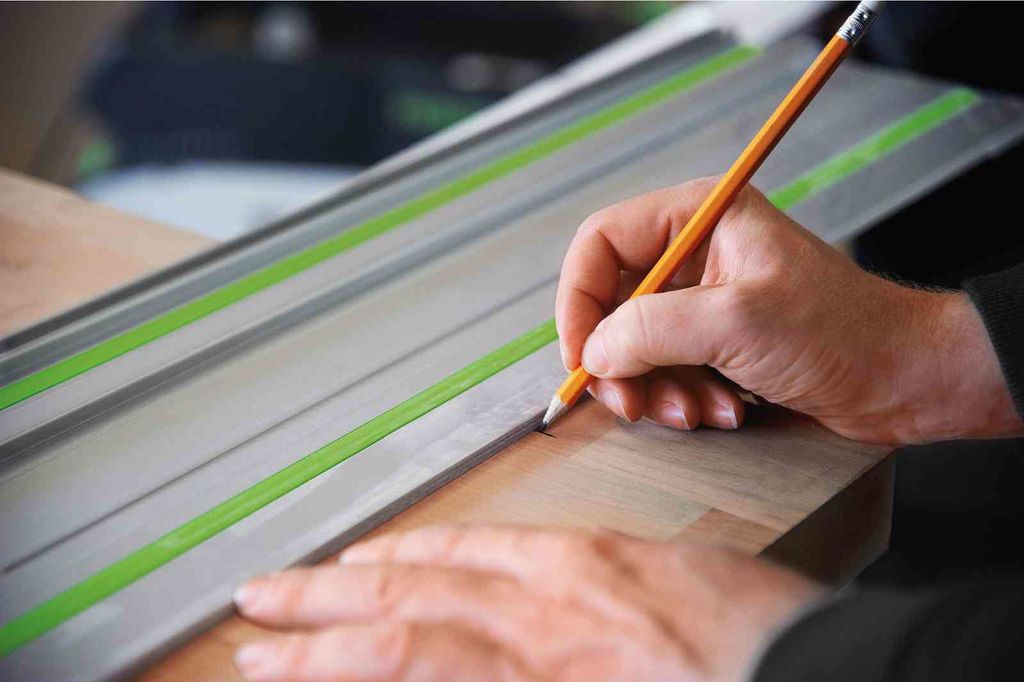 Festool 1400m styrskena är ett professionellt verktyg som är utformat för att säkerställa spikraka och splitterfria snitt med Festool sänksågar, sticksågar, fräsar och andra maskiner. Den innehåller flera unika funktioner som ett splitterskydd som minimerar splittring under sågning, ett häftunderlägg som gör den lätt att placera även på glatta material, och en glidbeläggning som gör att maskinen glider lätt på styrskenan. Dessutom skyddar den arbetsobjektets yta mot skador och har extra spår för tillbehör som gör ytterligare tillämpningar möjliga.