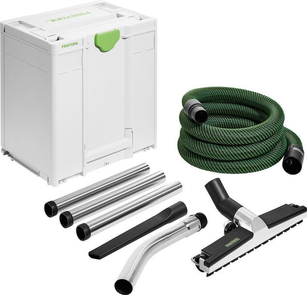 Ett effektivt städset för bygget eller verkstaden, förpackat i en praktisk Systainer. Inkluderar munstycken, förlängningsrör, sugslang och handrör för mångsidig rengöring.