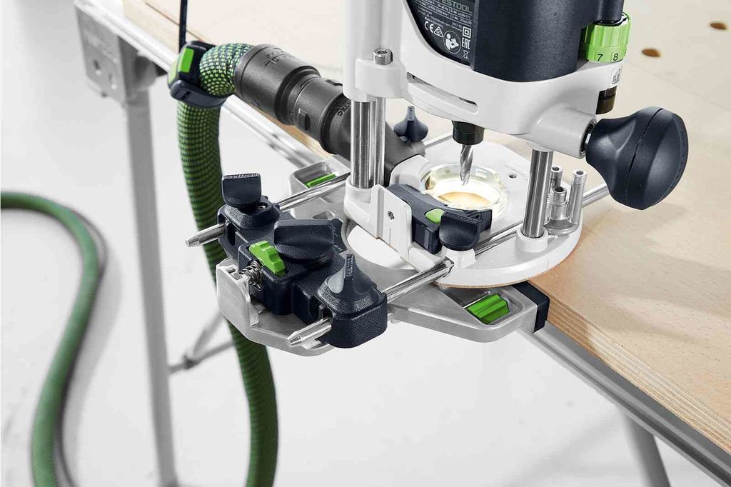 Tack vare den kompakta designen och den låga vikten är den enkel att manövrera längs med kanter, linjer och även komplexa kurvor. Det vridningsstyva fräsbordet, med styrpelare på båda sidor, säkerställer stabilitet och precision vid arbete. Med en fri sikt över fräsområdet, snabbt och enkelt fräsbyte samt en 1/10 mm-exakt inställning av fräsdjupet upp till 55 mm, gör att OF 1010 REBQ-Plus står ut som ett optimalt verktyg för fina fräsarbeten.