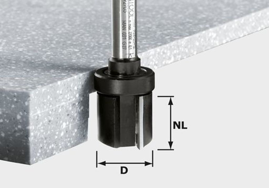 - Planfräsen med stor diameter och styrkullager i plast, utformad för planfräsning av 2 limmade mineralmaterialplattor