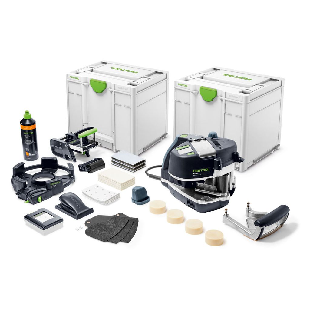 Som del av Festools system får du ett fullt flöde från förberedelse till polerad finish. Kantlistmagasin gör långa kanter smidiga, extra rulle ger jämn matning och tillbehören i kitet täcker slipning, skrapning och polering. Granat och Vlies ger ren slipbild inför lack eller olja och polermedel MPA 5010 OR lyfter glansen. Allt packas säkert i Systainer för ordning, transport och proffsigt intryck hos kunden.