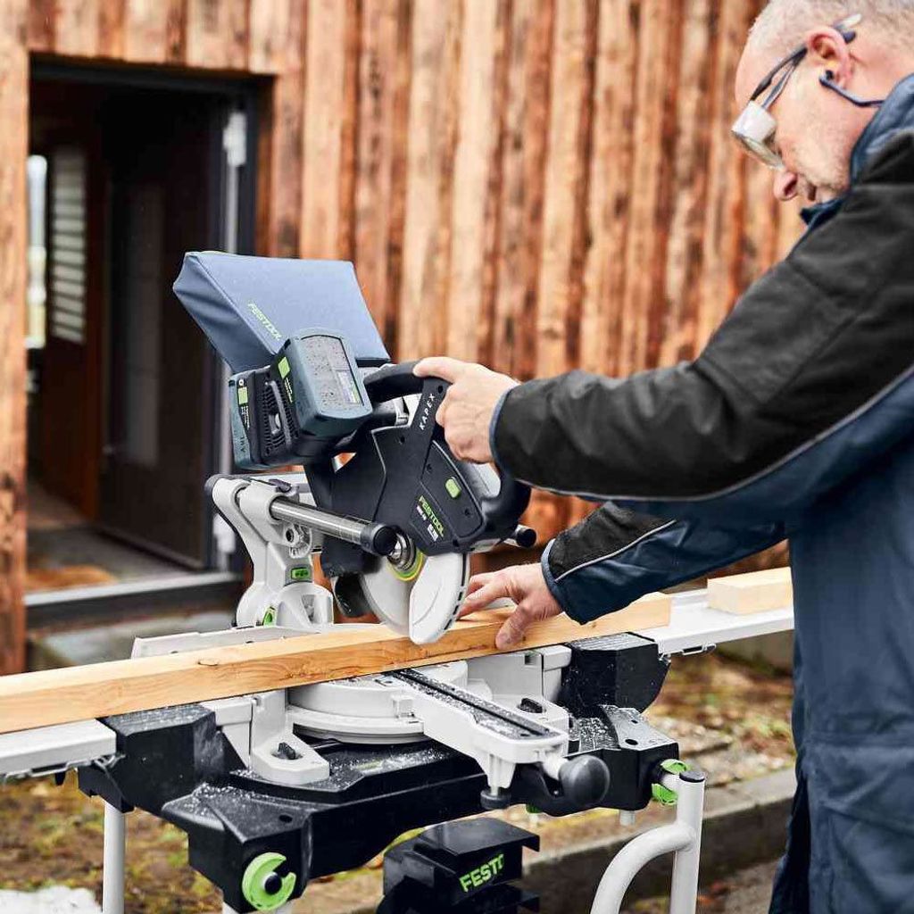 Med ett perfekt avstämt system går det lättare att nå utmärkta resultat och att arbeta hälsovänligare. Bättre: med sågklingor för varje uppgift – tack vare varvtalsförvalet med 100 % materialanpassad hastighet – och en smygvinkel för direkt överföring av inner- och yttervinklar. Hälsovänligare: det rullbara arbets- & transportstativet ger ett ergonomiskt arbete och en enkel transport. Dessutom dammpåse för så gott som dammfritt arbete. Enkelt och praktiskt: med ett energipaket bestående av batterier + laddare, praktiskt förpackade i Systainer³.