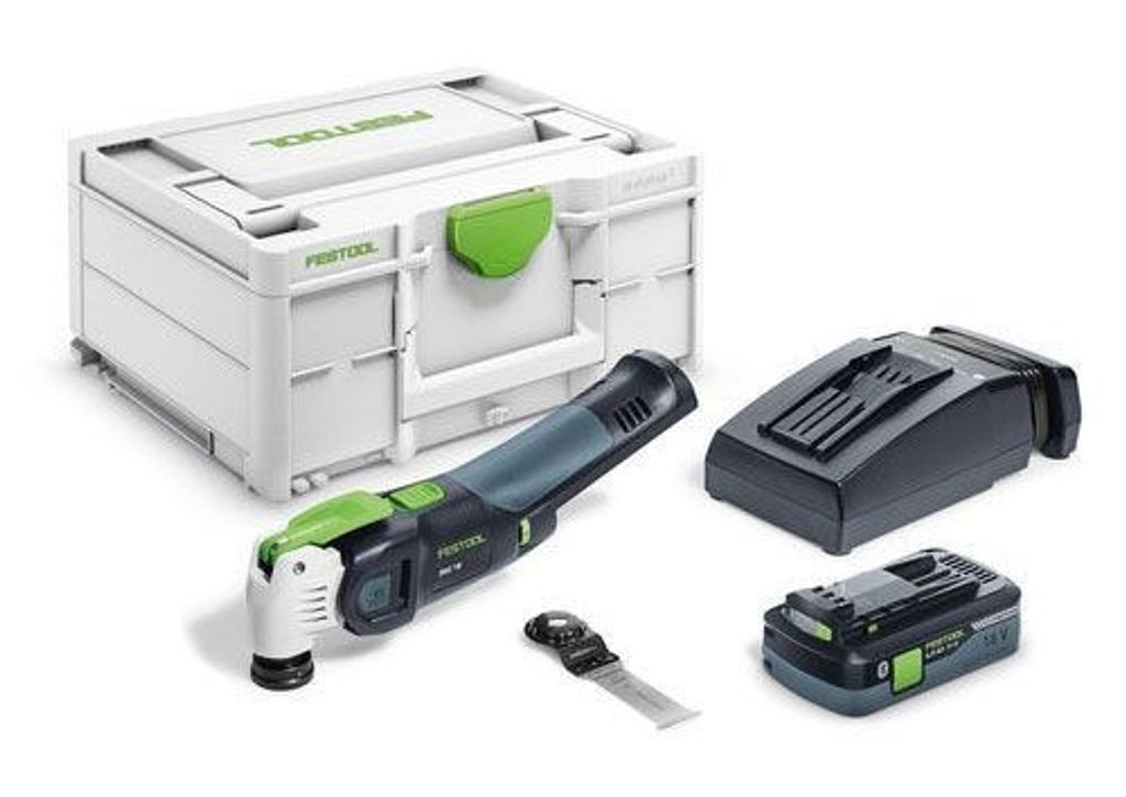 Festool Vecturo OSC 18 LI E-Basic är ett batteridrivet multiverktyg ifrån Festool med Starlock-Max fäste. Den batteridrivna multimaskinen är utrustad med en kolborstfri motor, Starlock-max snabbfäste, överbelastningsskydd, snabbroms, reglerbart varvtal och en kompakt och smidigt handtag.