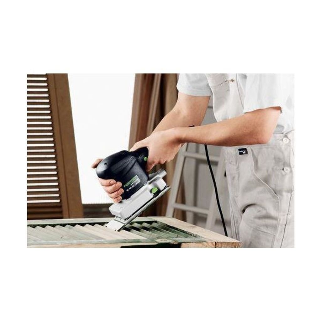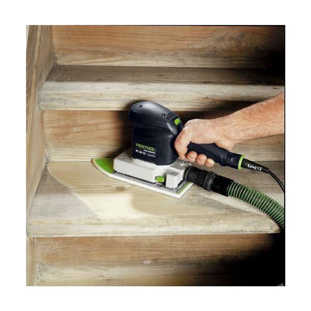 Festool planslip RS 300 EQ-Set är tusenkonstnären som är mångsidigt användbar genom de olika utbytbara slipplattorna. Perfekt för lodräta ställen och arbete ovanför huvudet tack vare den ergonomiska utformning.