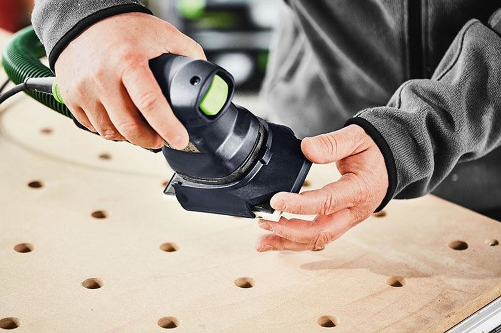Festool RTS 400 REQ är en lätt och kompakt slipmaskin, väger endast 1,2 kg och är idealisk för slipning ovanför huvudhöjd. Den nya MMC-reglerelektroniken erbjuder upp till 25% högre slipeffekt. Med genomtänkta detaljer som Longlife-dammpåsen, Softgrip-handtag och PROTECTOR-kantskydd, ger maskinen dammfritt arbete och mindre efterbearbetning. Den integrerade bajonettkopplingen ger säkert dammutsug.