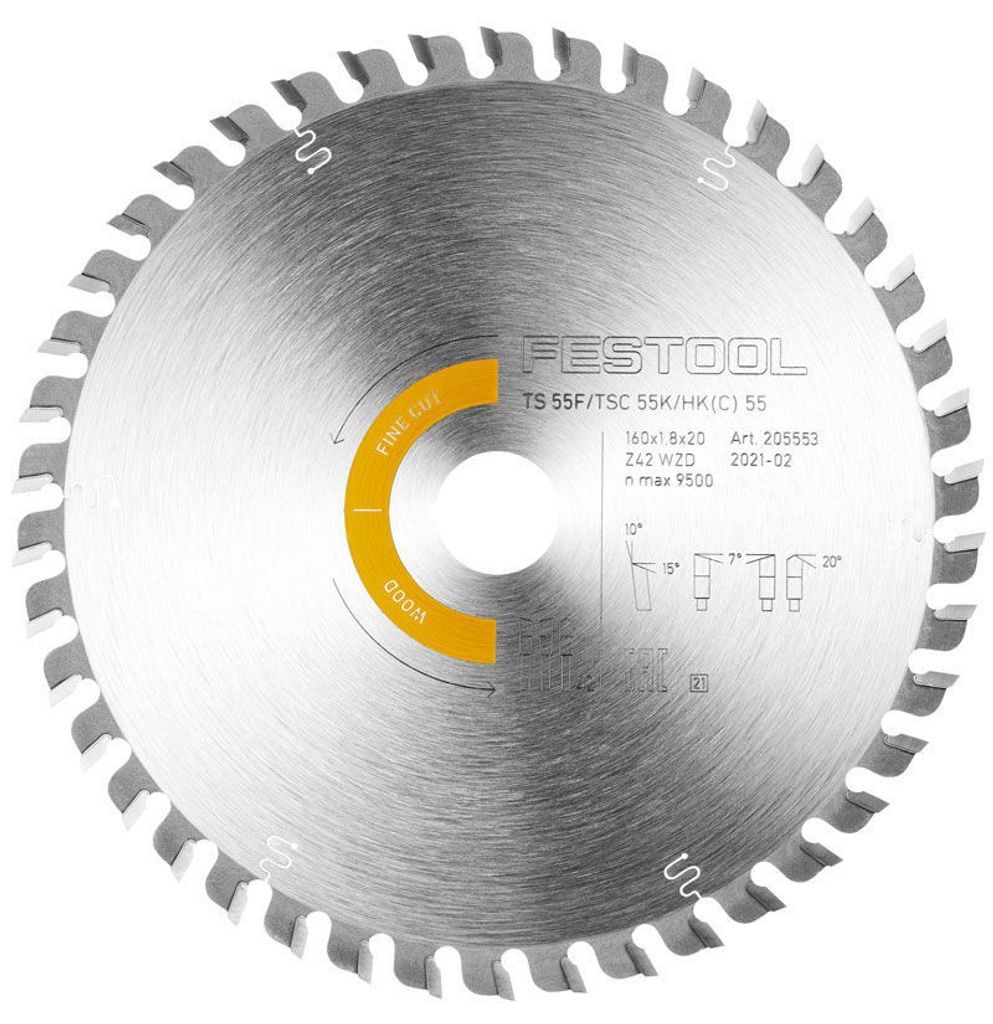 Festool sågklinga med en diameter på 160mm som passar till Festools nya sänksåg TS 55 FEBQ, TSC 55 K, HKC 55 och HK 55.