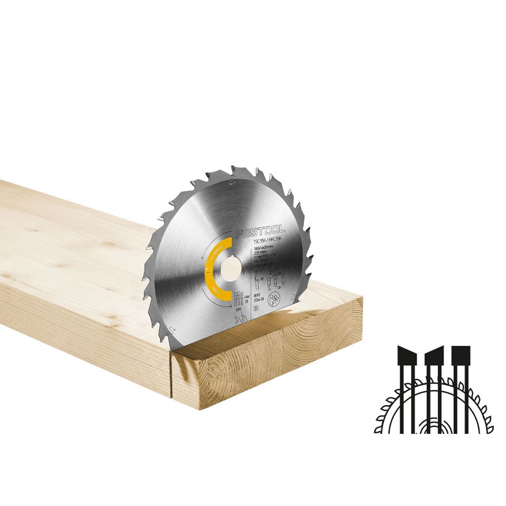 Som del av WOOD UNIVERSAL täcker klingan ett brett spektrum av material som massivt trä, OSB, spånskivor, lamellträ, multiplex, MDF och hårdfiber. Festools färgkod gör det lätt att hitta rätt klinga i lådan. Med FWW25 får du en pålitlig partner för allt från konstruktion och altan till inredning och exakt tillsågning av skivor.