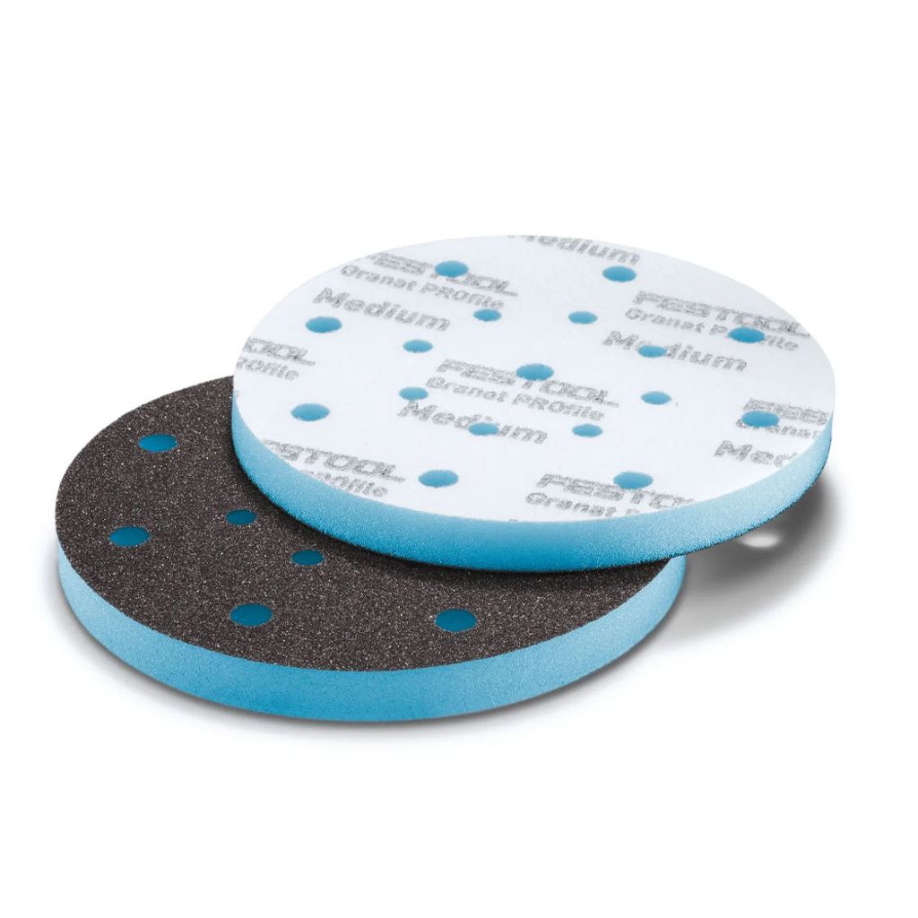 Festool Granat PROfile är ett mjukt slippapper utvecklat för maskinell slipning av profiler, kurvor och konturer med hög precision. Den mjuka skumkärnan i 13 mm polyuretan anpassar sig efter arbetsytan och ger jämn tryckfördelning. Det minskar risken för genomslipning och slipspår, vilket gör slippappret till ett utmärkt val för noggrant förarbete på detaljerade ytor.