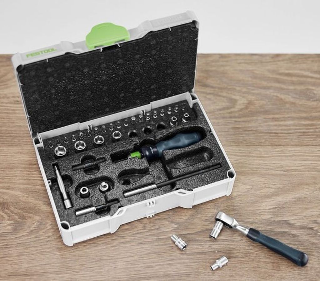 Festool Spärrskaft-set SYS3 S 76-1/4"-CE RA är idealiskt för montering av möbler, kök och andra montagearbeten. Flexibiliteten med CENTROTEC-adaptrar och hylsor gör det perfekt för professionella och hemmabrukare som kräver effektivitet och precision.