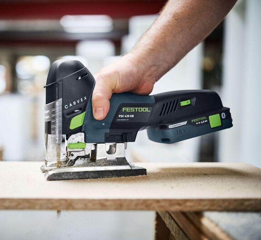 Festool PSC 420 HPC 4,0 EBI-Set CARVEX är idealisk för exakta snitt och komplexa utskärningar. Perfekt för köksmontering, möbeltillverkning, inredningssnickeri och byggprojekt. Passar även för kapning av arbetsstycken, sågning av cirklar, rundningar och mönster i bjälkar samt snitt underifrån.