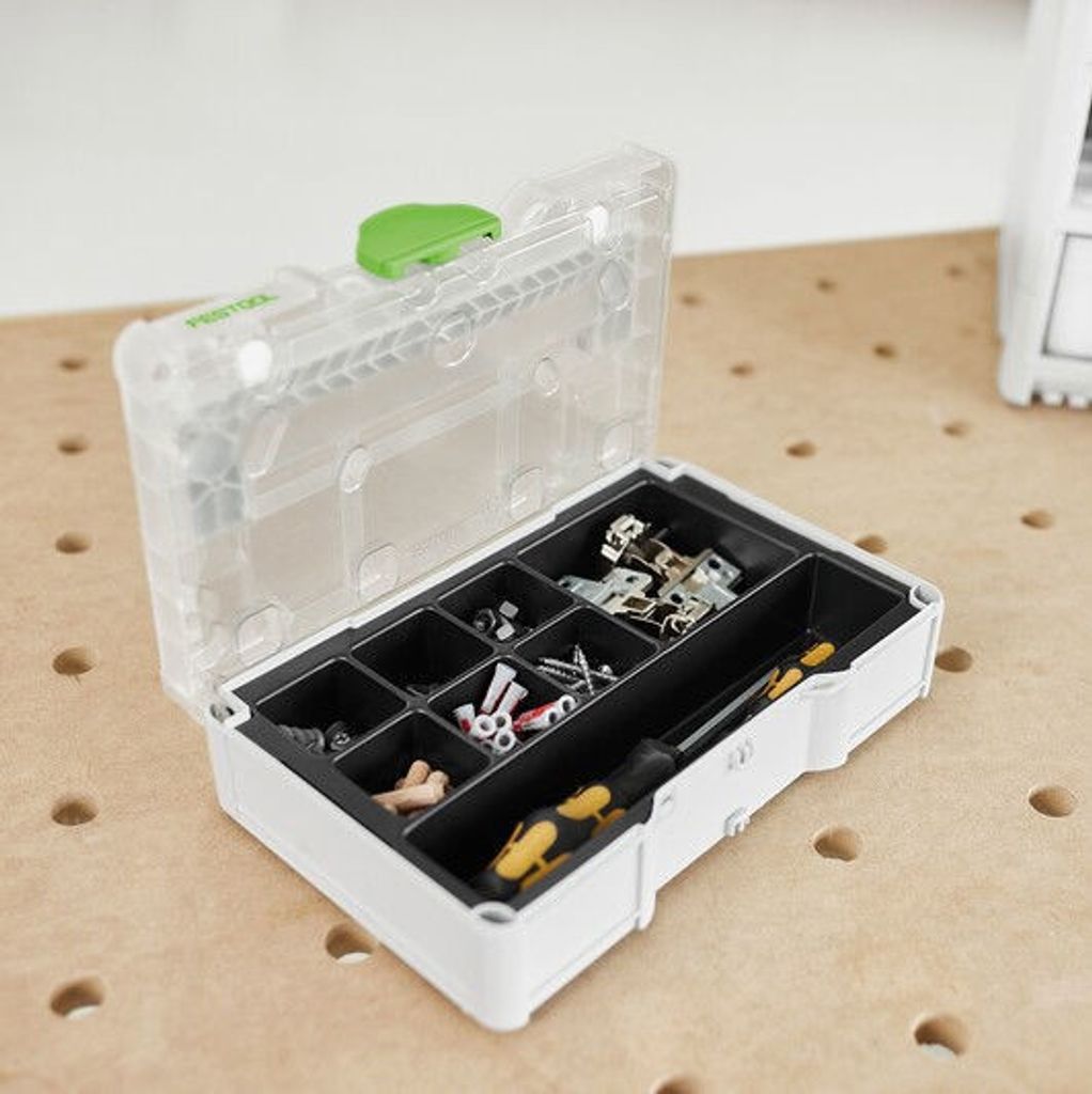 Festool Systainer³ SYS3 S 76 TRA UNI är en idealisk lösning för att organisera och transportera småsaker och tillbehör med högsta effektivitet. Denna MINI-Systainer är utrustad med en praktisk formpressad insats som gör det enkelt att hålla allt på sin plats, samtidigt som det transparenta locket ger snabb överblick över innehållet. Med sina kompakta dimensioner och lätta vikt är den enkel att ta med till arbetsplatsen eller förvara i verkstaden.