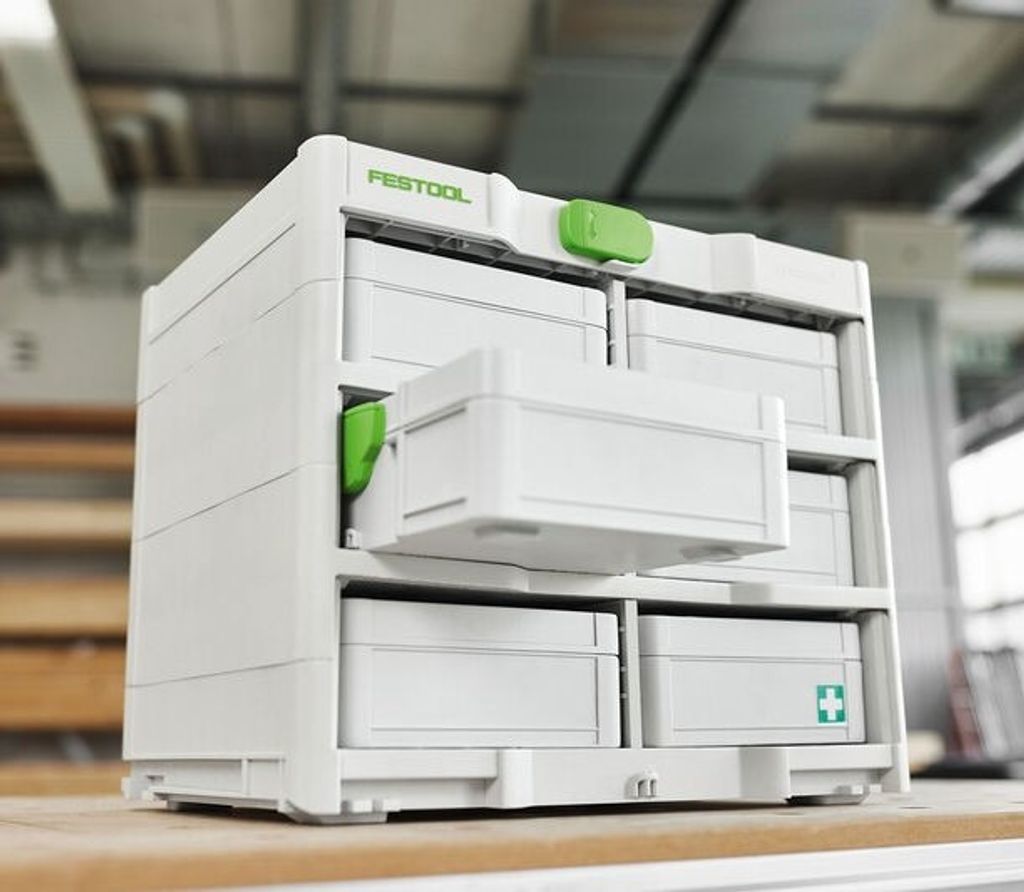 Systainer³ SYS3 S 76 TRA UNI är designad för att passa perfekt i Festools Systainer³-rack, där upp till sex Systainer³ S 76 kan förvaras som i ett hyllsystem. Detta gör det möjligt att bygga en modulär och flexibel förvaringslösning både i verkstaden och för transport i fordonsinredningen vario3 från bott. MINI-Systainrarna kan också kopplas till varandra och tidigare generationer av MINI-Systainrar för att skapa ett sammanhängande förvaringssystem.