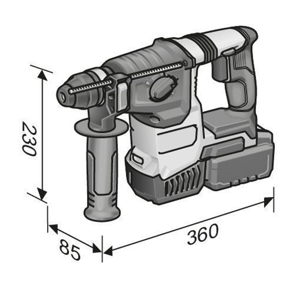 - Funktionsväljare med fyra funktioner: borrning, hammarborrning, bilning, mejsling.