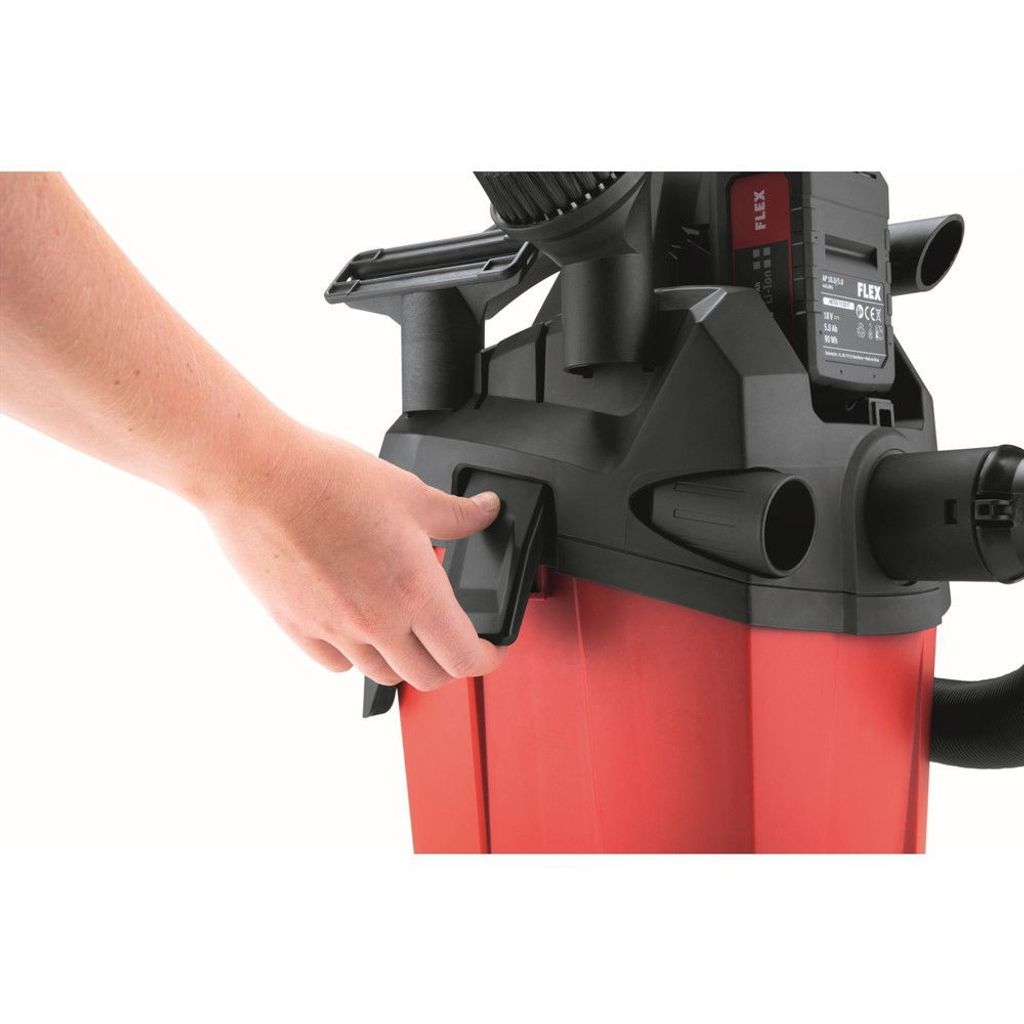 -Effektstark sugare för professionell användning vid slutmontering, rengöring av fordon osv. Enkel anslutning av FLEX elverktyg med FLEX Clip-system för utsugsarbeten.