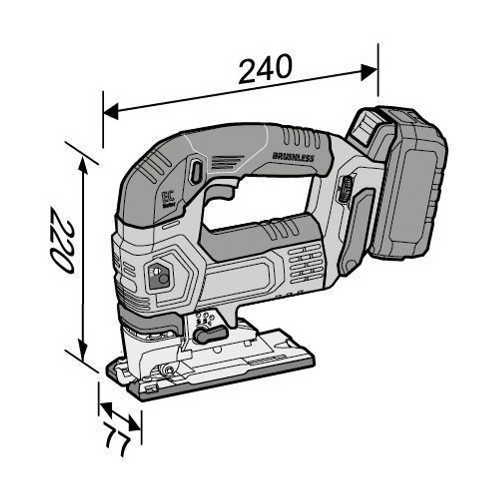 - Steglös inställning av såghastigheten med potentiometerhjul med uppstartsautomatik i läge ”A”.