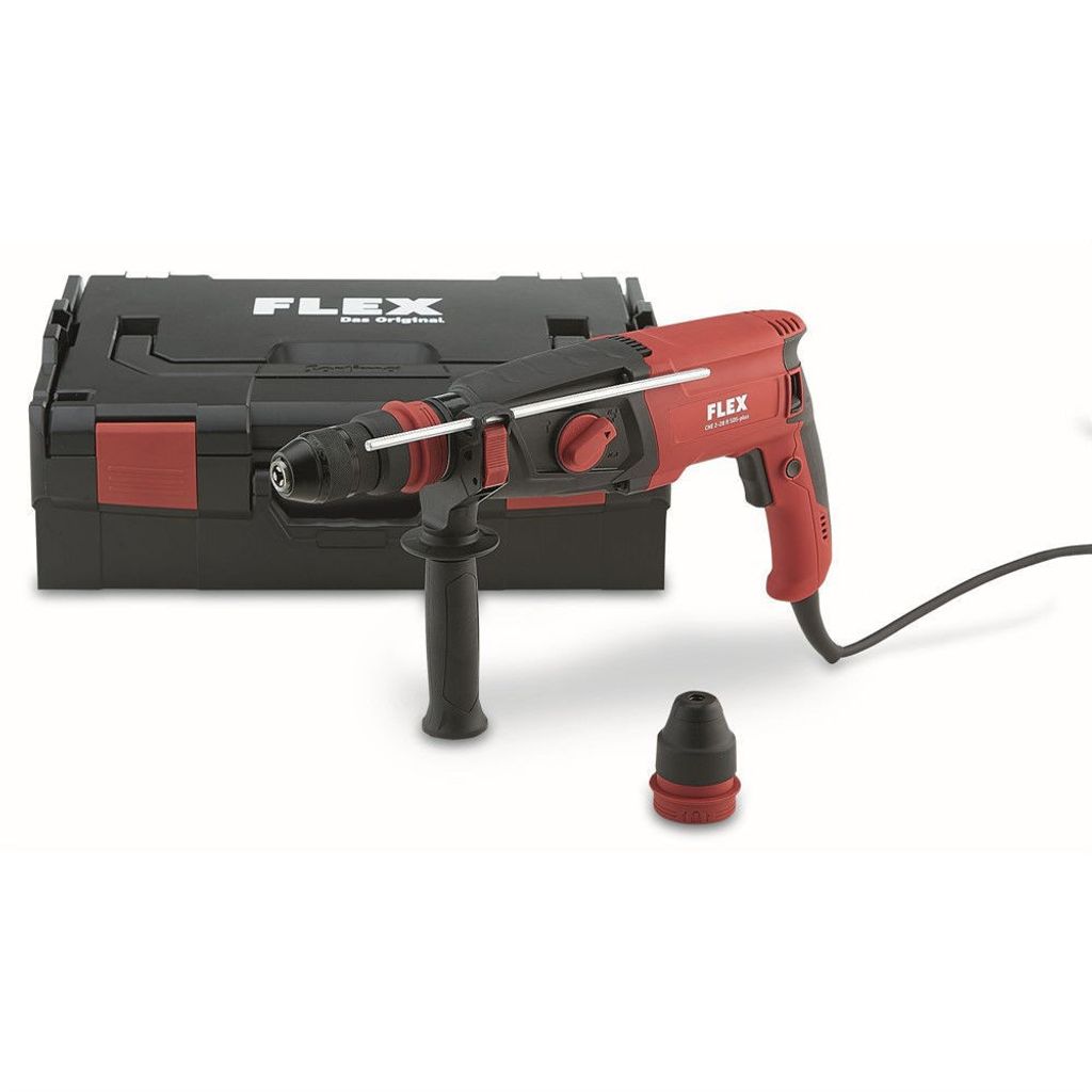 Flex borrhammare CHE2-28R SDS-Plus är en universal borrhammare 2,5 kg. Borr- och mejselhammare i pistolmodell med höger och vänsterroterande gång.