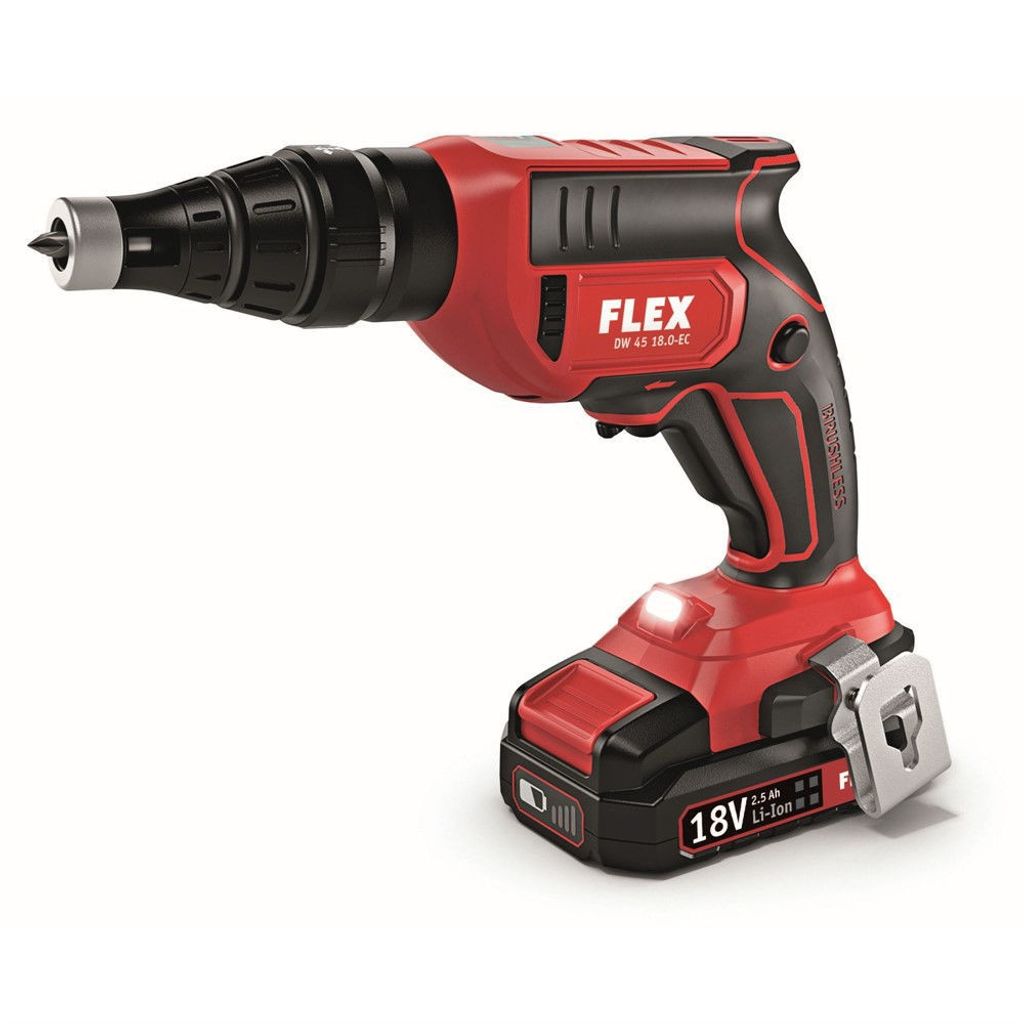 Flex gipsskruvdragare DW45 18.0V med borstlös motor för ökad effektivitet och en längre livslängd. Elektroniska styrsystemet (EMS) skyddar maskinen, förlänger livslängden och ökar effektiviteten.
