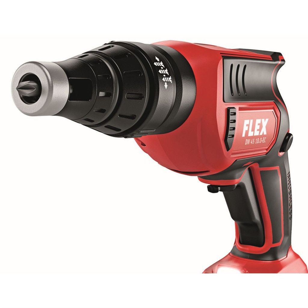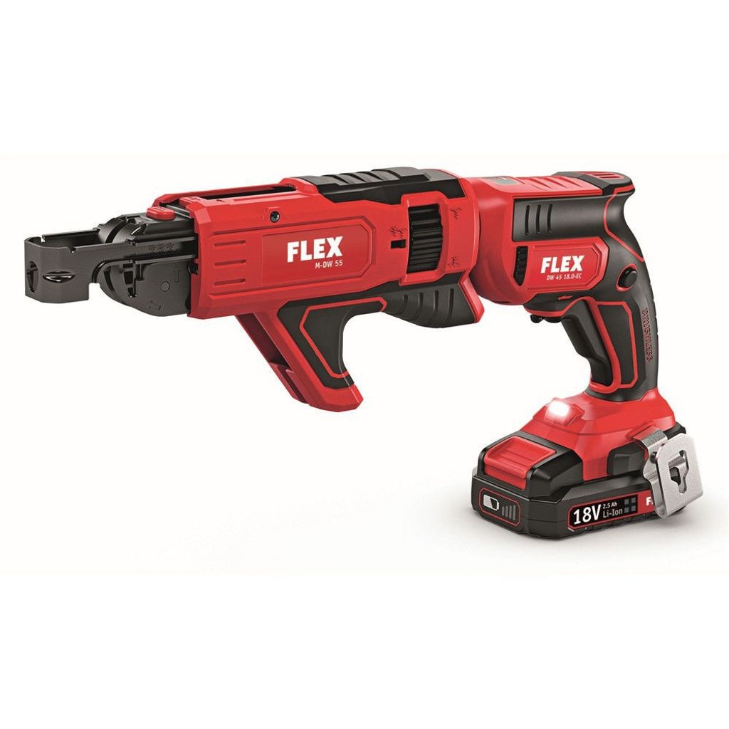 Flex gipsskruvdragare DW45 18.0V med skruvmagasin. Utrustad med borstlös motor för ökad effektivitet och en längre livslängd. Elektroniska styrsystemet (EMS) skyddar maskinen, förlänger livslängden och ökar effektiviteten.
