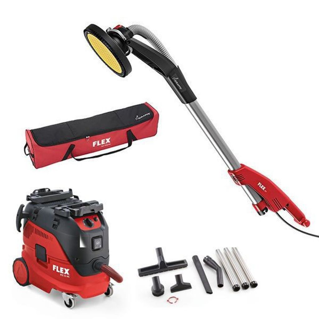 Flex giraffpaket innehåller Giraff vägg- och takslipmaskin med utbytbart huvudsystem GE7 och säkerhetsdammsugaren VCE33LAC.