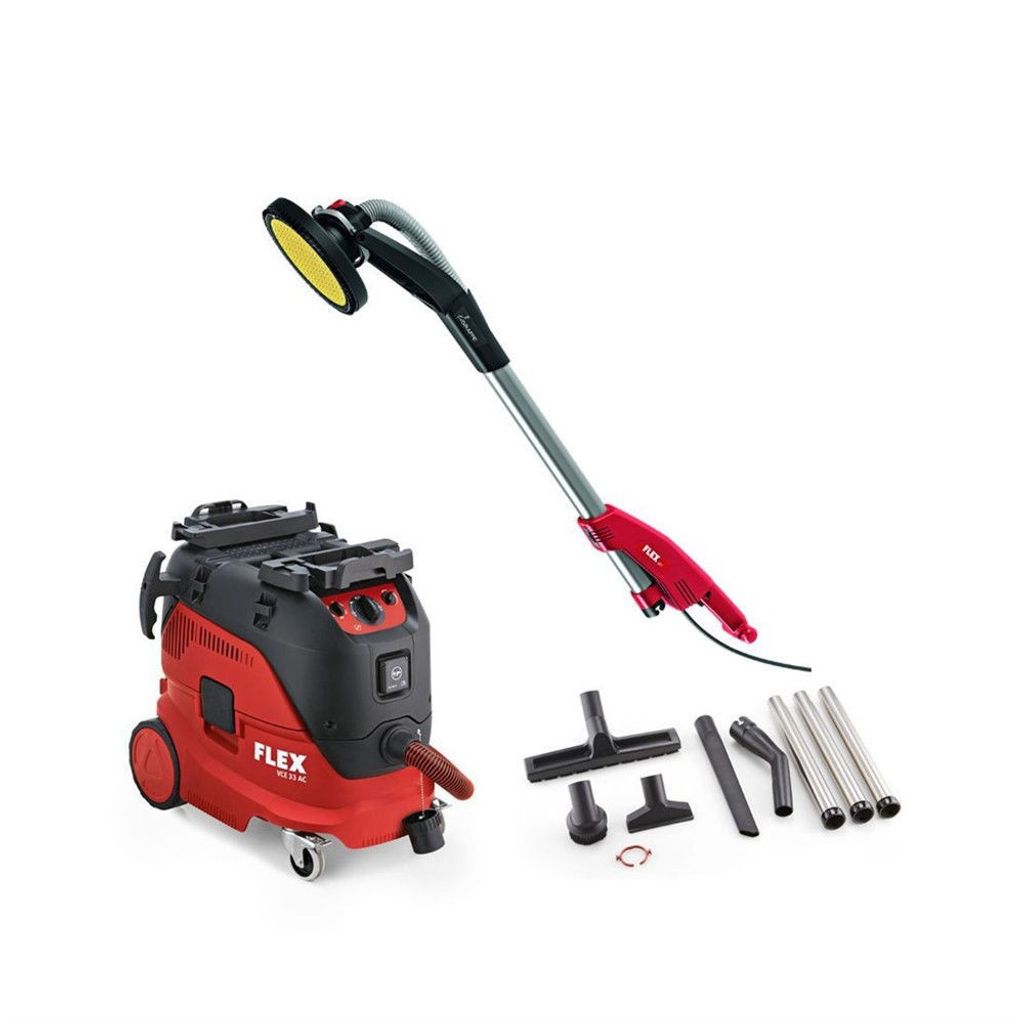 Flex giraffpaket innehåller Giraff vägg- och takslipmaskin med utbytbart huvudsystem GE7 och säkerhetsdammsugaren VCE33MAC.