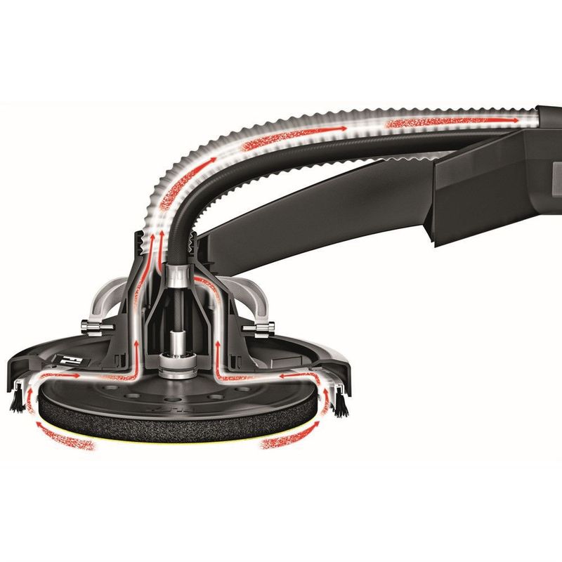 - Effektivt dammutsug mellan borstkrans och slipplattan förhindrar igensättning av slipmedlet samt främjar dammfri arbetsmiljö.