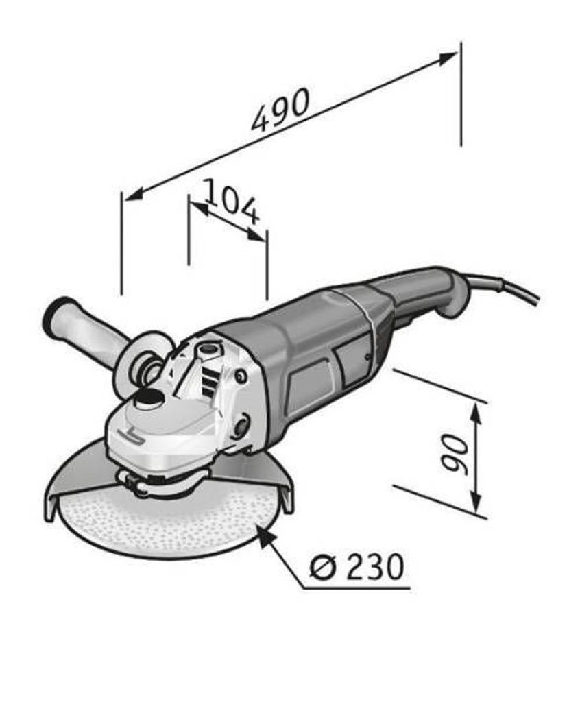 Kraftfull vinkelslip. 2100 W, 230 mm. Kraftfull motor och växellådshus. Den stabila och robusta växellådan samt det metallinkapslade spindellagret ger ökad tillförlitlighet och hållbarhet