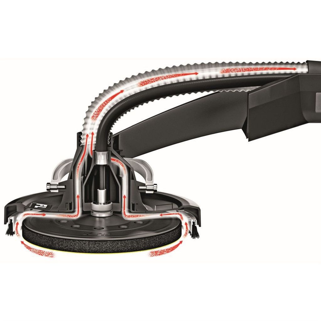 - Kardanknutsmonterat sliphuvud ger stor flexibilitet och optimal anpassning för slipning av väggar, tak och golv.