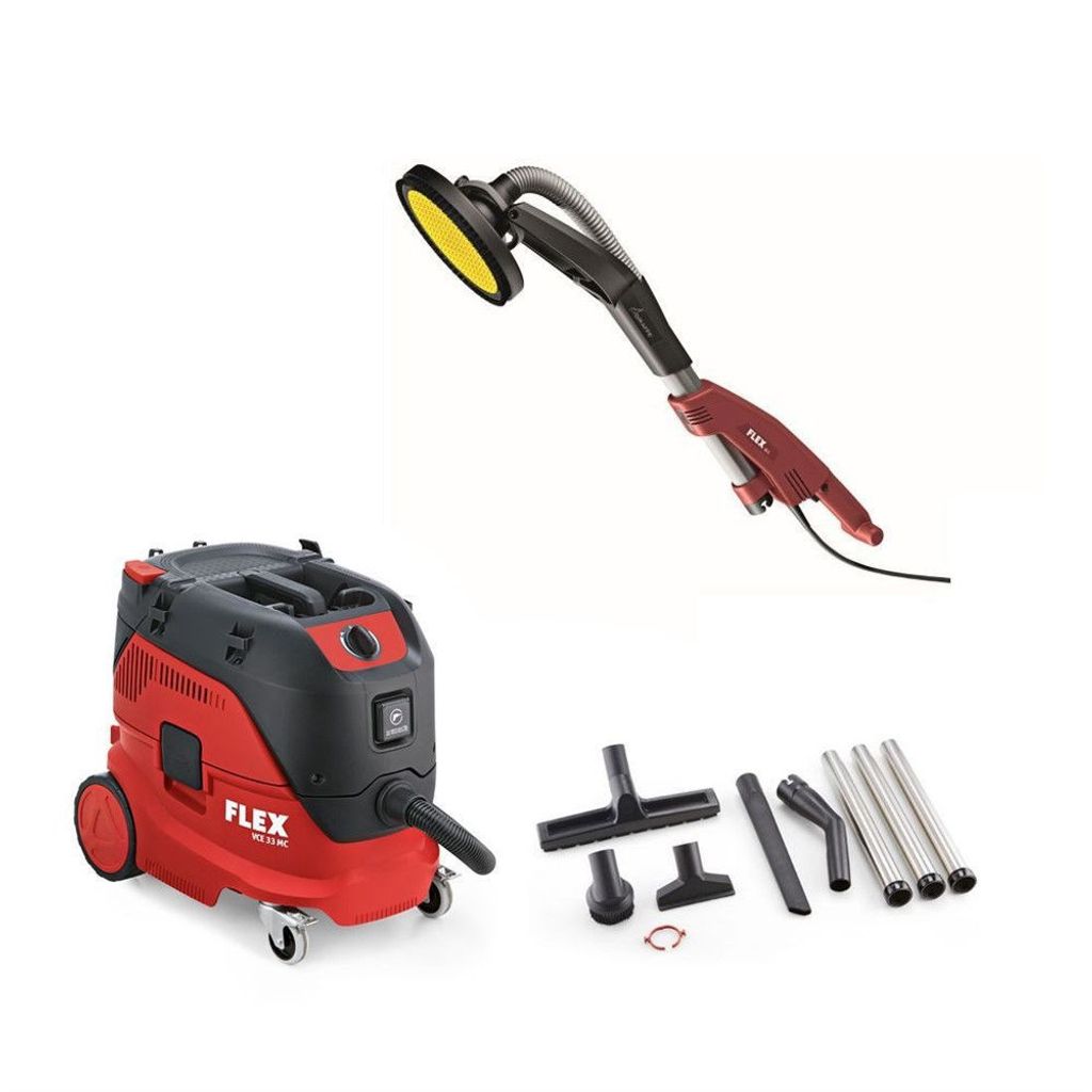 Flex Okapipaket innehåller kompakt Okapi® vägg- och takslipmaskin GSE5 och säkerhetsdammsugaren VCE33LMC.
