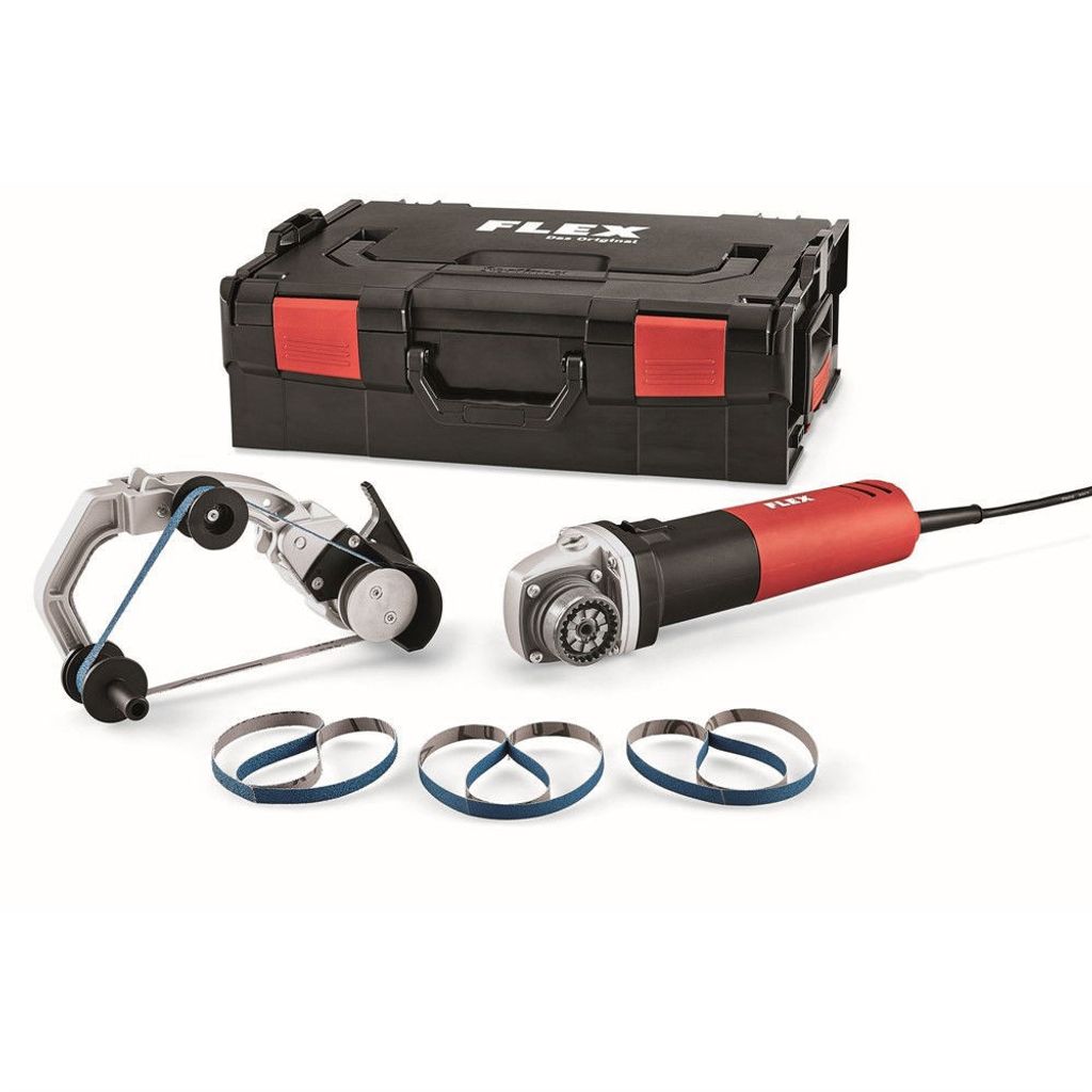 Flex rörbandslipmaskin TRINOFLEX i set. Helt inkapslad elektronikmodul som skyddar mot metalldamm. Den 3 gånger lindade rotorn minskar motorslitage och ökar livslängden.
