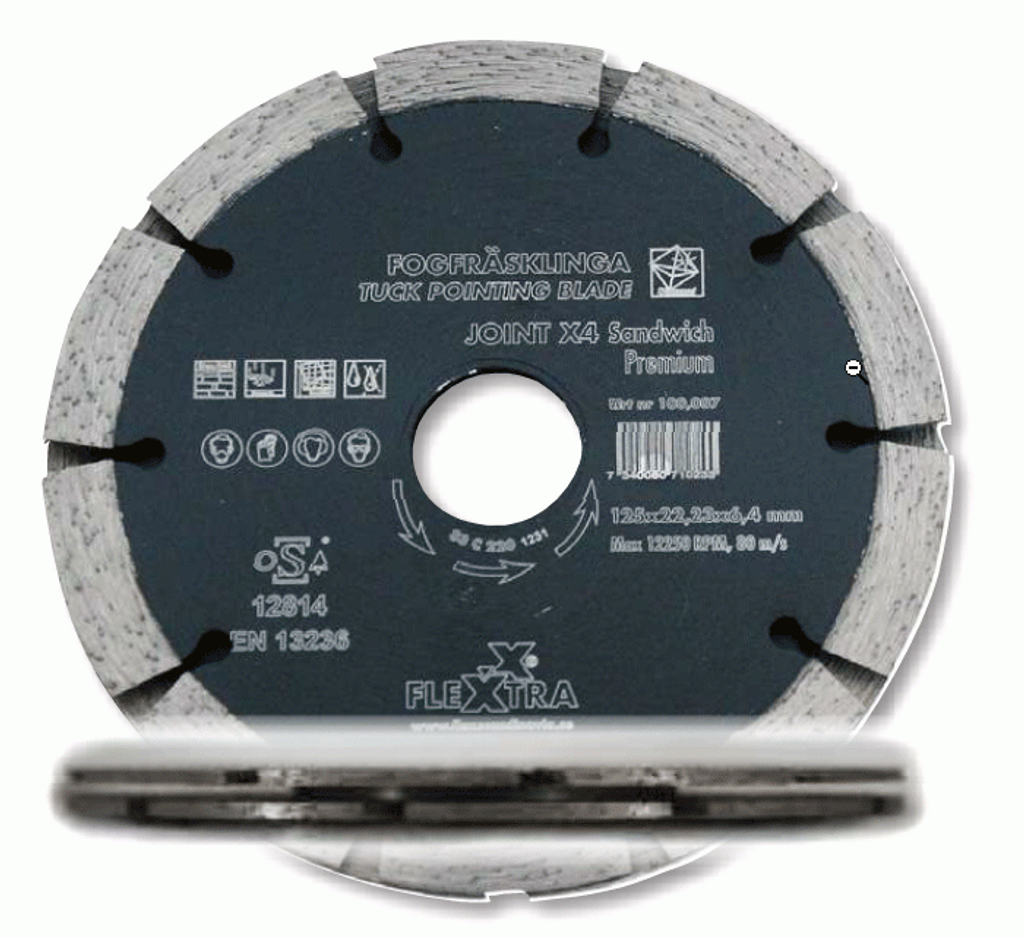 Fem klingmodeller med bindmedel och diamantgrit speciellt framtagna för krävande fogfräsning. ANvänds torrt eller med kylvätska.