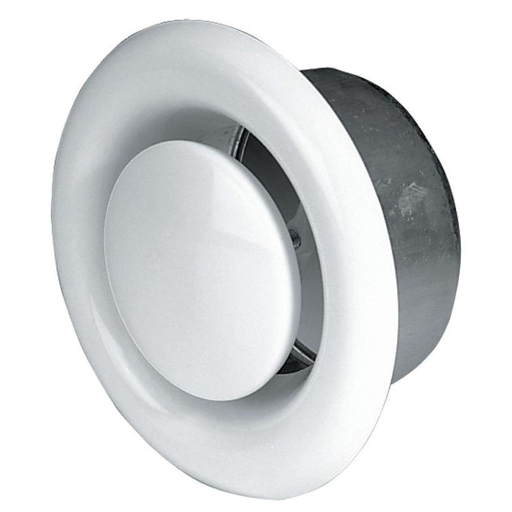Frånluftsdon FMLS 100, Komplett sats. Donen består av en fästfläns med påmonterade fjädrar som fäster donen i fästram eller ventilationsrör, samt en aerodynamiskt utformad strypkägla.