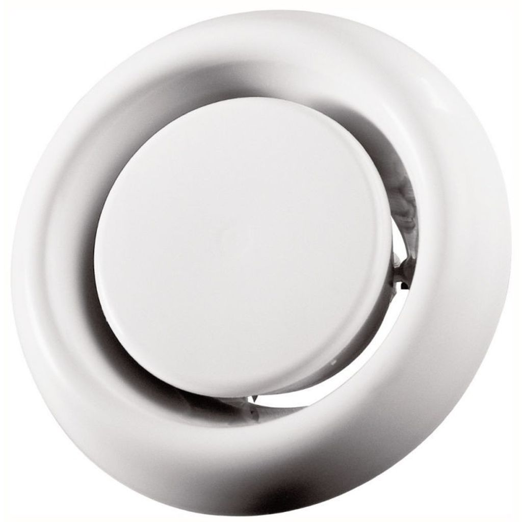 Fresh Frånluftsdon FPH 125, Av plast med mycket låg ljudalstring tack vare en aerodynamiskt utformad strypkägla. Donen består av en fästfläns med påmonterade fjädrar som fäster donen i en fästram eller ventilationsrör, samt en aerodynamiskt utformad strypkägla. En packning tätar runt donet och förhindrar nedsmutsning av tak och väggar. Donen används i ventilationssystem med relativt högt tryckfall.