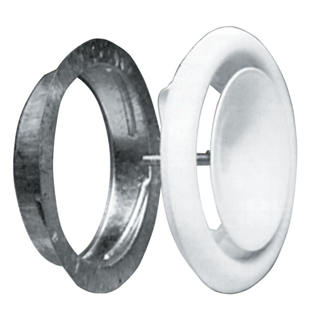 Komplett sats. Donen består av en fästfläns med påmonterade fjädrar som fäster donen i fästram eller ventilationsrör, samt en aerodynamiskt utformad strypkägla. Donet är avsett för montage i tak eller vägg.