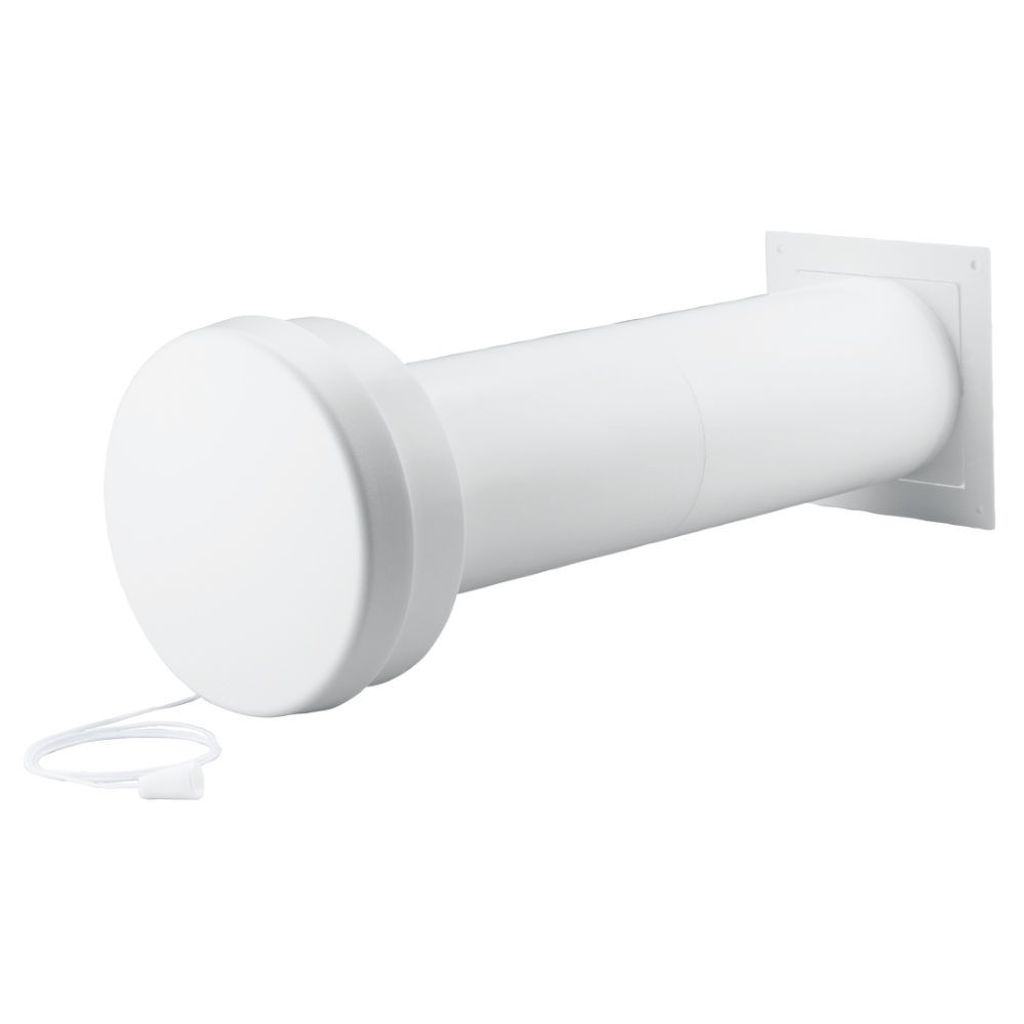 Tilluftsventil för väggmontage. Används vid självdrag och frånluftssystem. I komplett utförande levereras ventilen med genomföring och utvändigt galler.