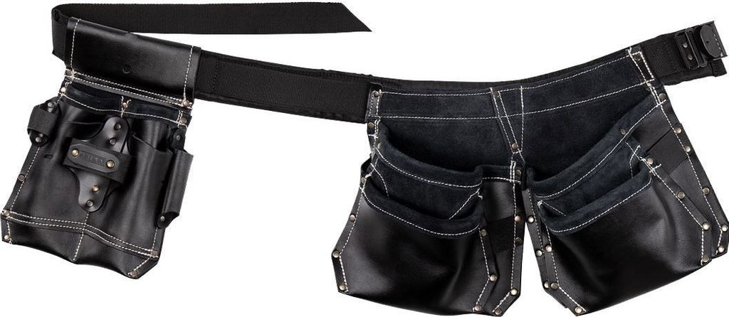 Verktygsbälte i kraftigt läder för vänsterhänta yrkessnickare, montörer, elektriker m fl. Polstrad mjukrem med metallspänne. Vattenavvisande läder i mycket hög kvalitet som håller sig mjukt även vid kyla och med mjuk specialbehandlad insida. Finns även i högerhänt version 100901. Tillverkat i Sverige.