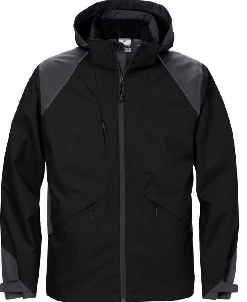 Fristads Acode skaljacka med justerbar huva och hög krage. Förlängt ryggslut för ökad komfort.
