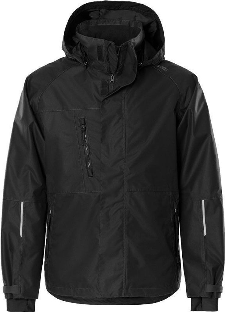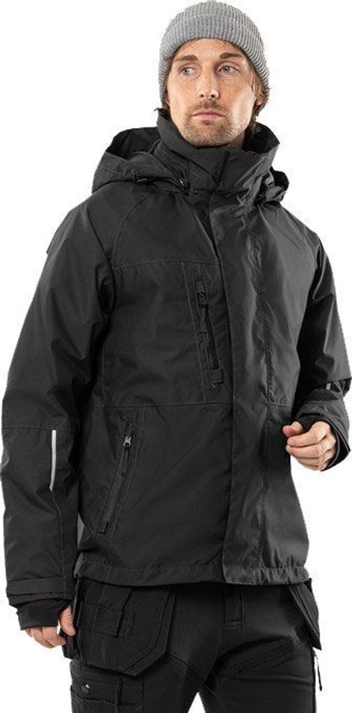 Jackan är utrustad med flera smarta funktioner, som en avtagbar och reglerbar huva, fleecefodrad krage, samt en dold dragkedja som går hela vägen upp i kragen för extra skydd mot vind och kyla. Flera fickor med dragkedja, inklusive en kartficka som är lättåtkomlig även när jackan är stängd, gör den extra praktisk för arbetsdagens alla behov. De förböjda ärmarna med justerbara ärmslut och elastisk mudd med tumgrepp ger ökad komfort och rörelsefrihet, medan reflexdetaljer ökar synligheten i mörka arbetsmiljöer.